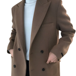 Topelt nööpidega disain pakub struktuuri ja rafineeritust, luues tähelepanu tõmbava silueti diskreetselt. Olgu sa siis kontoris või elegantsel õhtusöögil, see mantel tõstab su välimuse autoriteedi ja loomuliku elegantsiga.