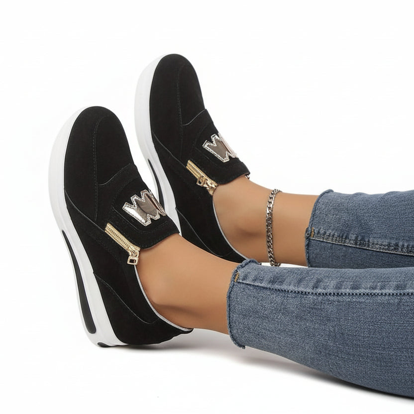 Kui kogete igapäevaselt ebamugavust või pinget halvasti istuvate jalanõude tõttu, tasub kaaluda meie ortopeedilisi naiste platvormtallaga slip-on tosse.