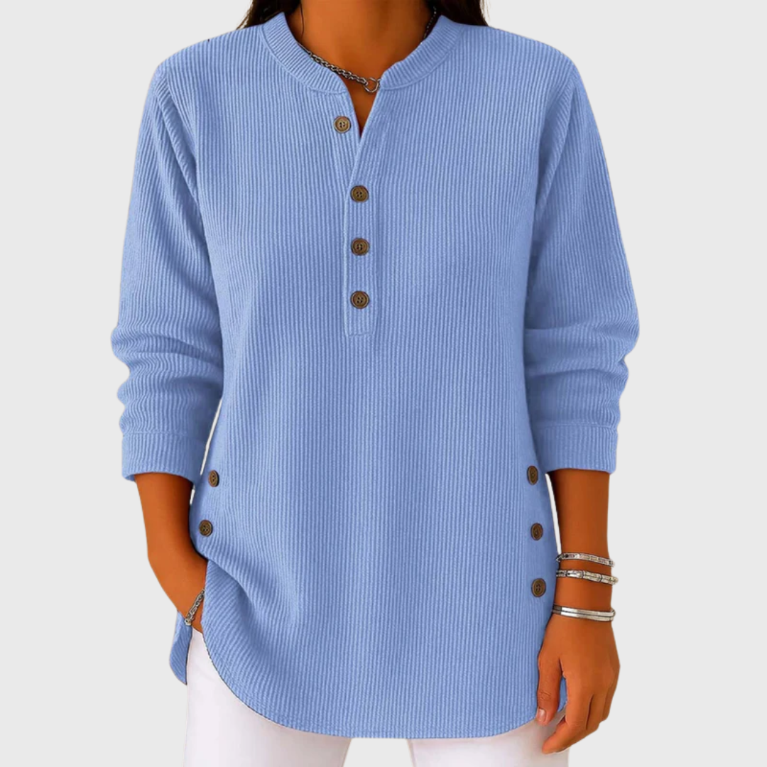 Claudia kõhtu varjav mugav tuunika langeb sujuvalt üle kõhu ja puusade ega rõhuta keha. Pikem lõige ja peen nööbidetail loovad kauni, salendava efekti. Ideaalne 50+ naistele, kes soovivad end iga päev mugavalt ja enesekindlalt riides tunda.