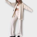 Elegantne komplekt, mis kohandub kergesti iga stiiliga, andes igale välimusele peenuse. Selle mitmekülgne disain sobib ideaalselt igaks sündmuseks, nii vabaaja kui ka igapäevaseks, ning ajatuks elegantsiks. Pehme tekstuur tagab mugavuse, samas kui pingevaba ja minimalistlik esteetika õhkub elegantsi.